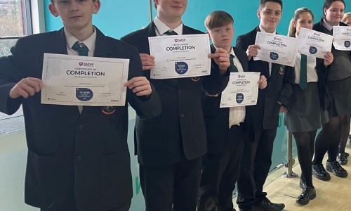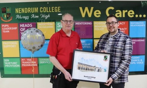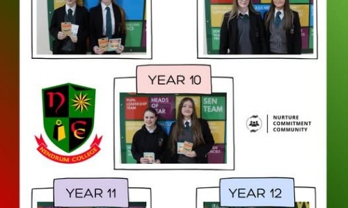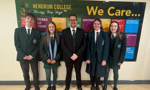 Our Year 12 students and their parents/guardians had the chance to meet with local schools offering Sixth Form provision. This was our second Post 16 event, following visits from SERC and Belfast Met last month. We'd like to thank the staff from each school who attended, helping to make the transition out of Nendrum smoother for our students. Pictured is our Principal, Mr Walker, with four of our Year 12 students from the class of 2025 who are now studying A Levels, supporting our current Year 12’s in making their Post 16 decisions.