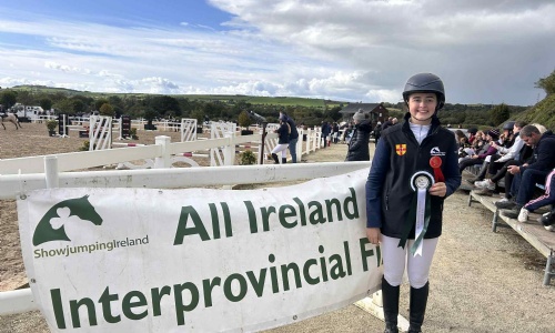 Huge congratulations to Maisie E who placed 5th in the 148 80cm and the Ulster team who won the 148 80cm at the All Ireland Interprovincial Final at Barnadown.